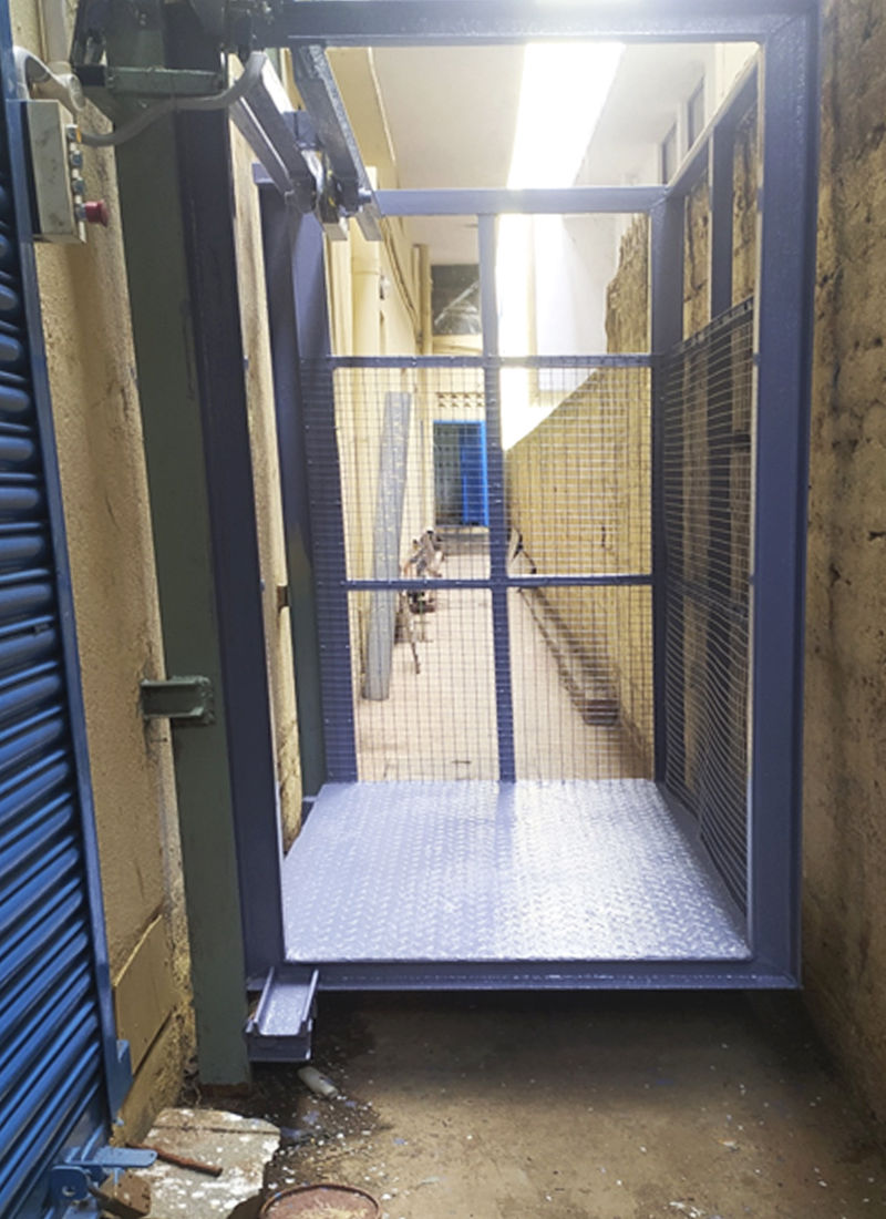 We manufacture all kind of Industrial Lifts, Heavy Duty Goods Lift , Hoist Goods Lift, Machine Lifters, Material handling lifts, goods lift with collapsible gates and Goods lift with cabin